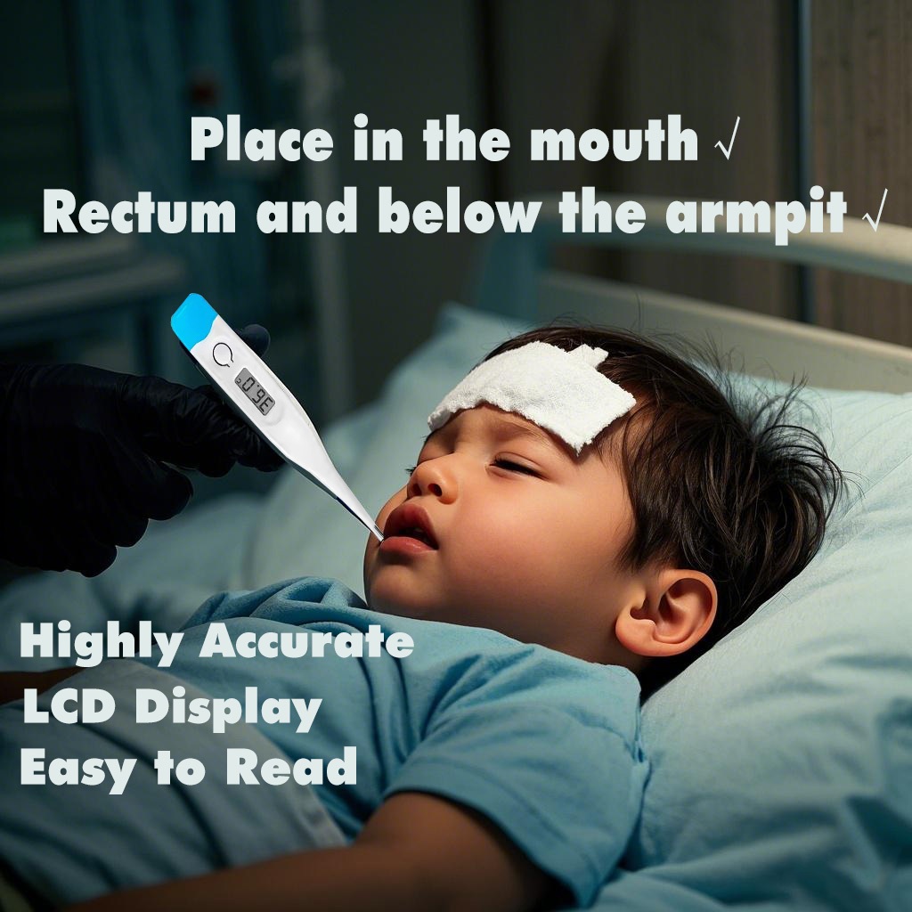 Ce thermomètre numérique professionnel à embout rigide permet une mesure rapide, précise et fiable de la température pour les soins quotidiens à domicile, en clinique, à l'hôpital et dans les établissements médicaux. Doté d'une sonde rigide et robuste, il assure un contact stable et des mesures cohérentes pour la température buccale, axillaire et rectale.