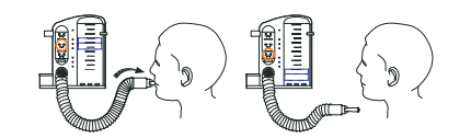 2. Juste avant de commencer l'exercice, expirez complètement tout l'air de vos poumons. Placez l'embout buccal dans votre bouche et maintenez-le fermement entre vos lèvres pour empêcher l'air de s'échapper à l'inspiration.