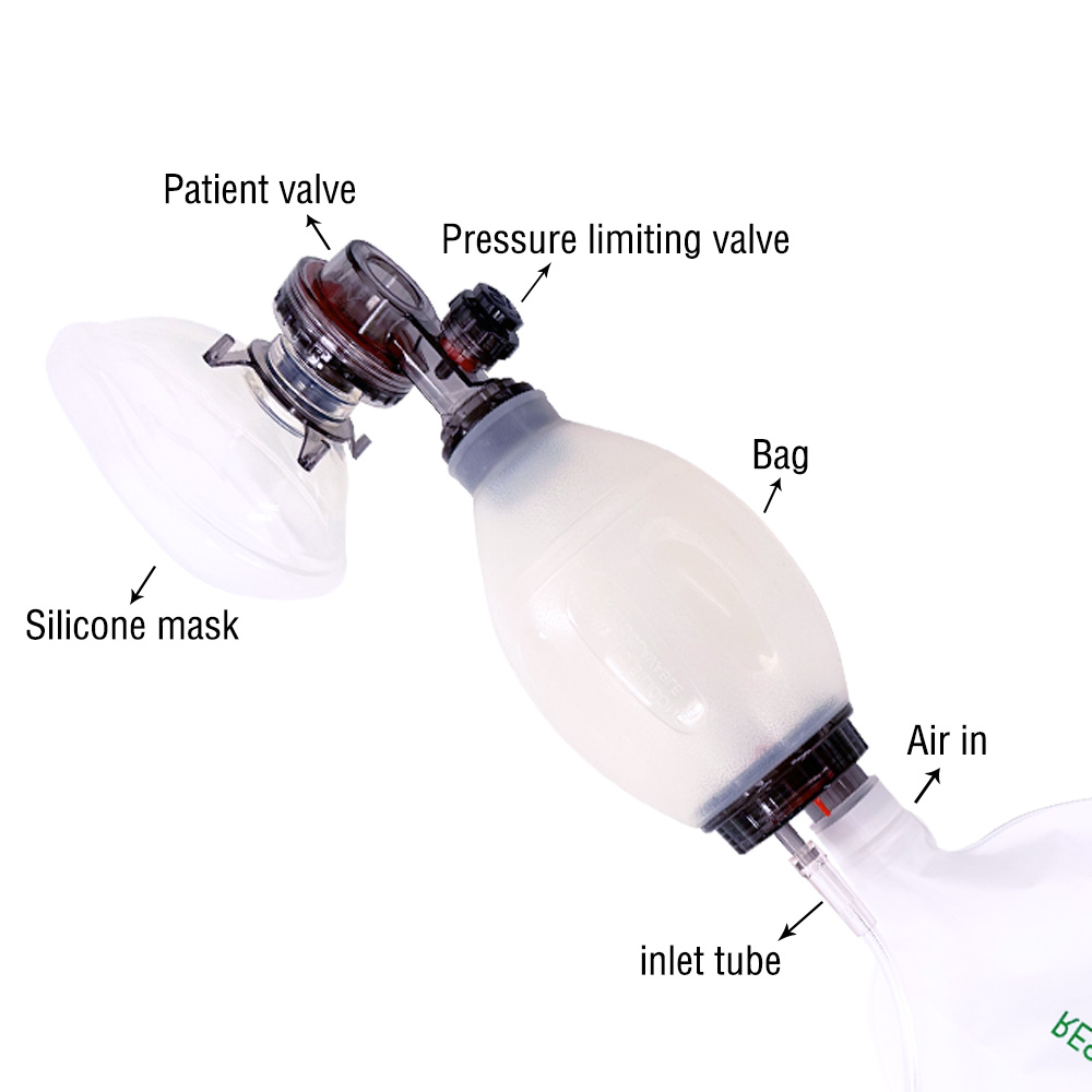 Le dispositif de réanimation manuelle est principalement fabriqué en silicone de qualité médicale, matériau qui offre une excellente flexibilité, élasticité et biocompatibilité. Doux au toucher, il épouse parfaitement la forme du visage, contribuant ainsi à réduire les risques de lésions dues à la pression exercée sur le visage du patient.